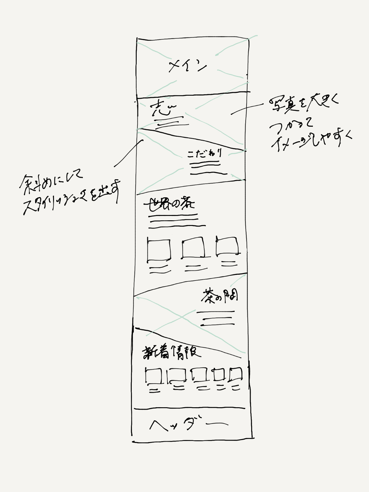 写真を大きく使い、お茶の香りがしてきそうな雰囲気にした事と、