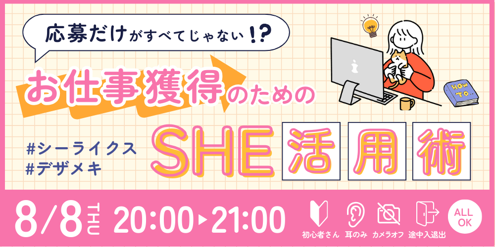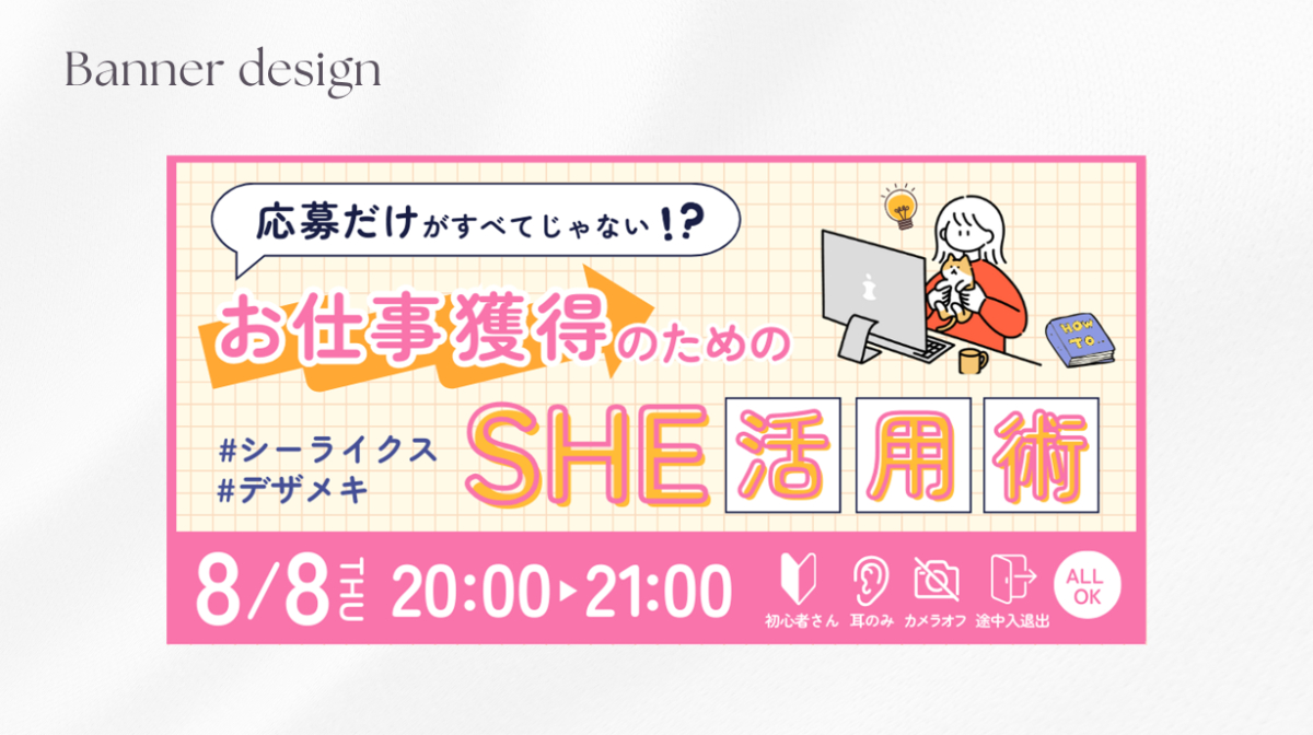 オンラインスクールSHElikesの「デザインコミュニティ」のイベント告知バナーを制作して欲しいと依頼がありました。