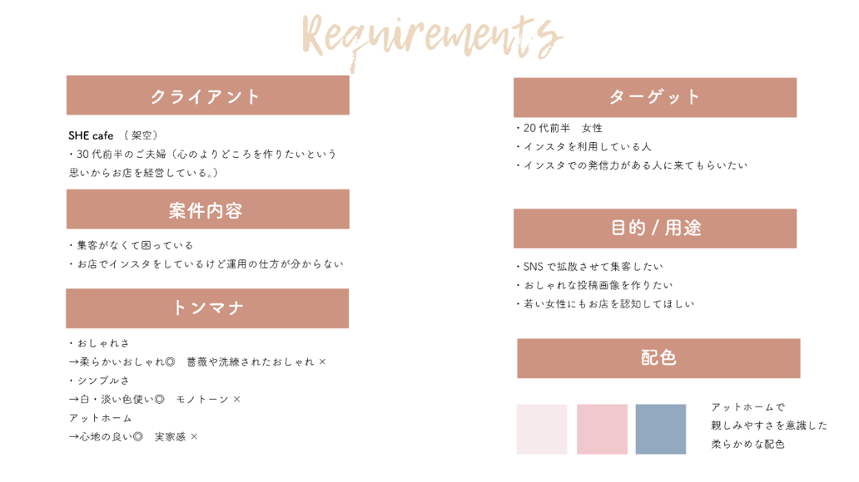 SHElikesコミュニティ内の企画でカフェのInstagram投稿用の画像に取り組みました。(制作時間:カスタマージャーニーマップ90分/作業約15時間)【使用ツール:Photoshop】