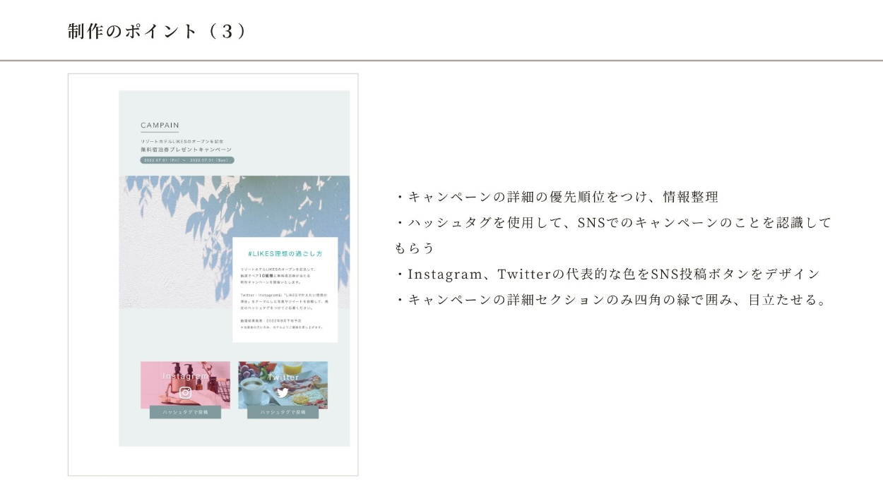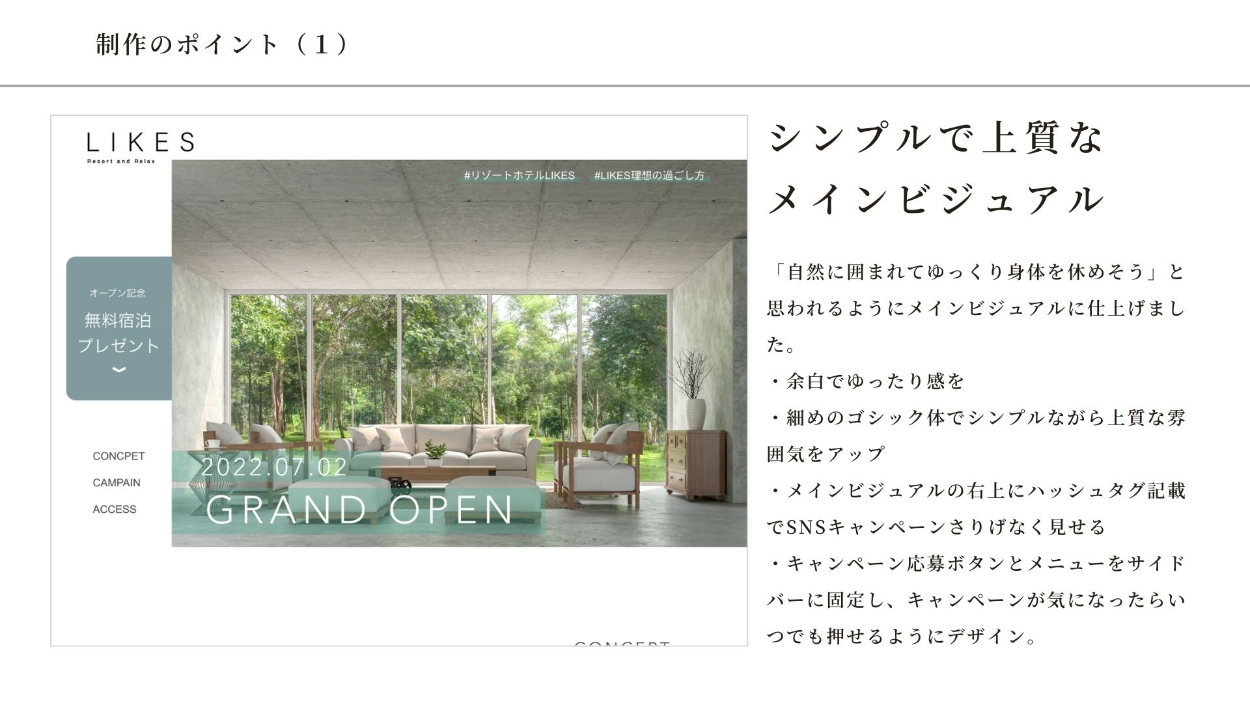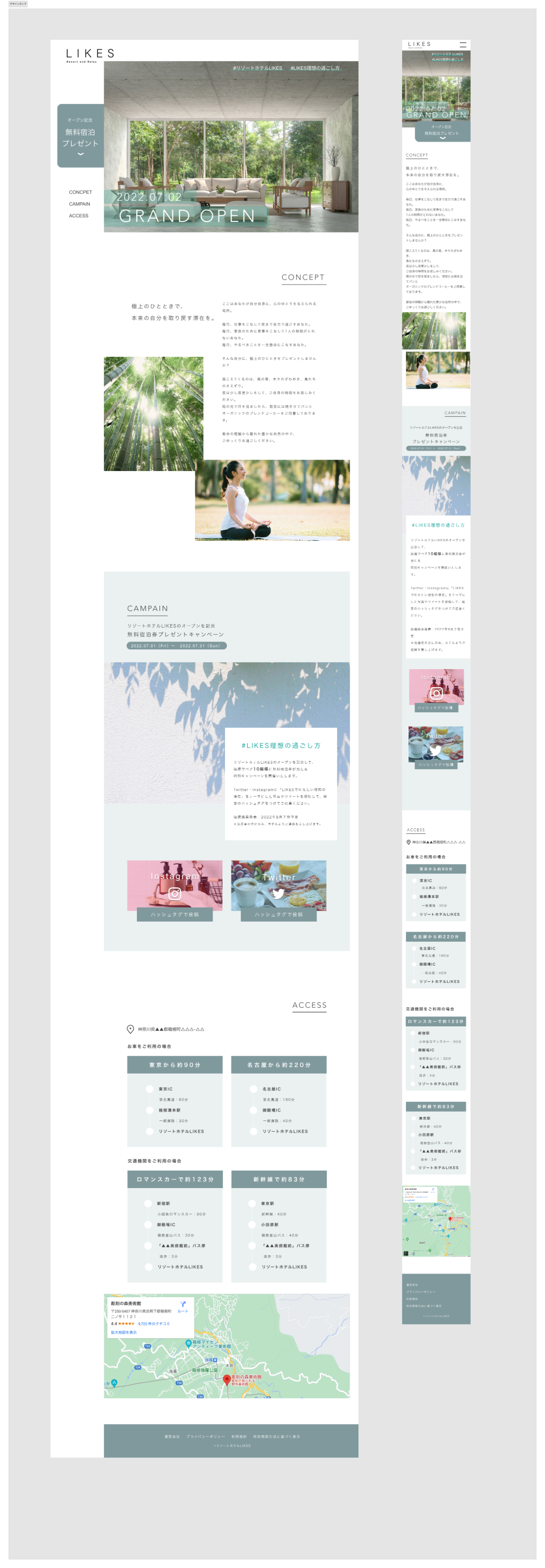 キャリアスクールのWEBサイト制作課題。架空のリゾートホテルの新規オープンキャンペーンサイトです。【制作時間】デザインカンプ20時間