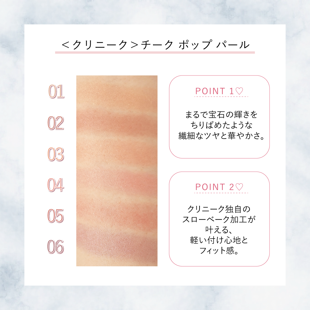 ・数字や文字にチークの実際の色を使用することでメリハリをつけると同時に色のイメージを印象付けた