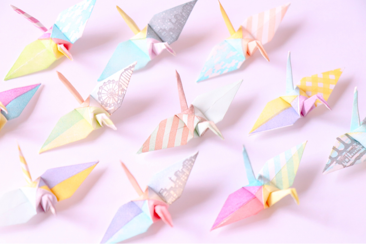 カラフルな折り鶴を折ることが出来る折り紙を、作ることが出来るハンコの提案
