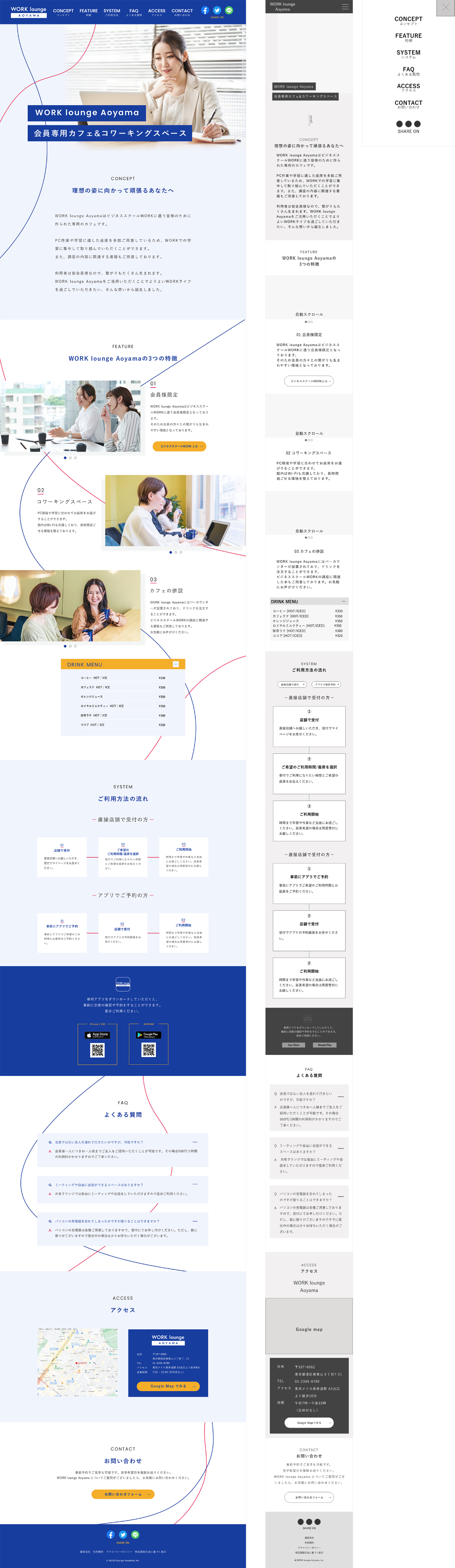 会員様限定のカフェ&コワーキングスペースをオープンすることとなりました。利用方法やアクセス情報を載せたWebサイトを制作したいなと思っています。