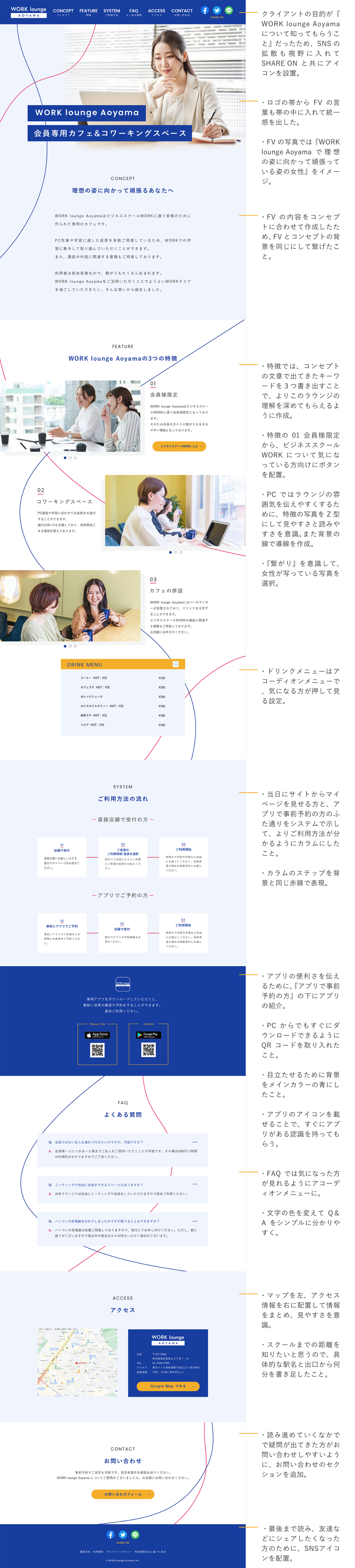 【課題】会員専用カフェ&コワーキングスペースのLP制作