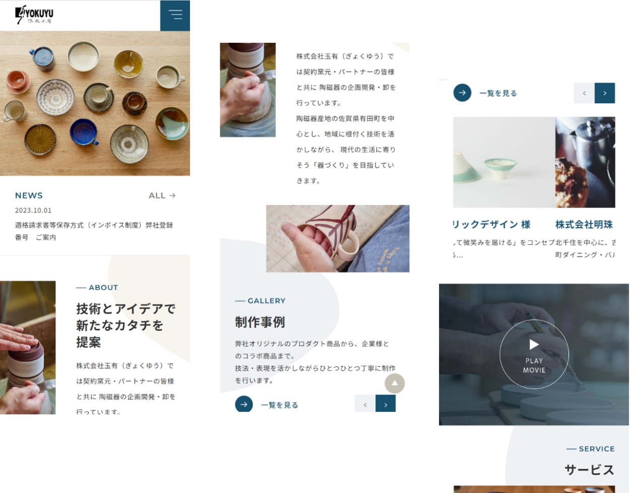 GYOKUYU WME DESIGN WEBデザイナー/エンジニア OVERVIEW サイトのデザイン(分担制)、コーディング、ワードプレス化を一式担当。イメージに合わせ柔らかい雰囲気のサイトに。 YEAR 2022