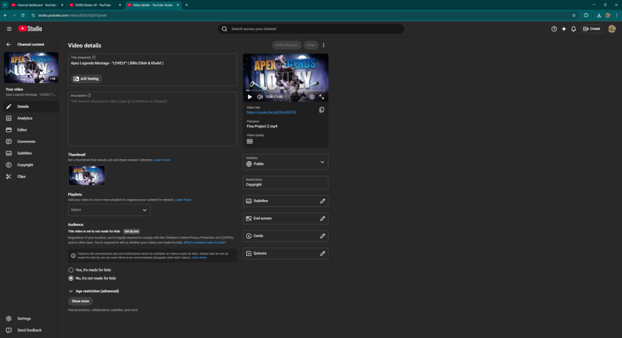 ”Apex Legends”というゲームで自分のゲームプレイの動画を”LOVELY”という曲に同期してモンタージュを作りました。