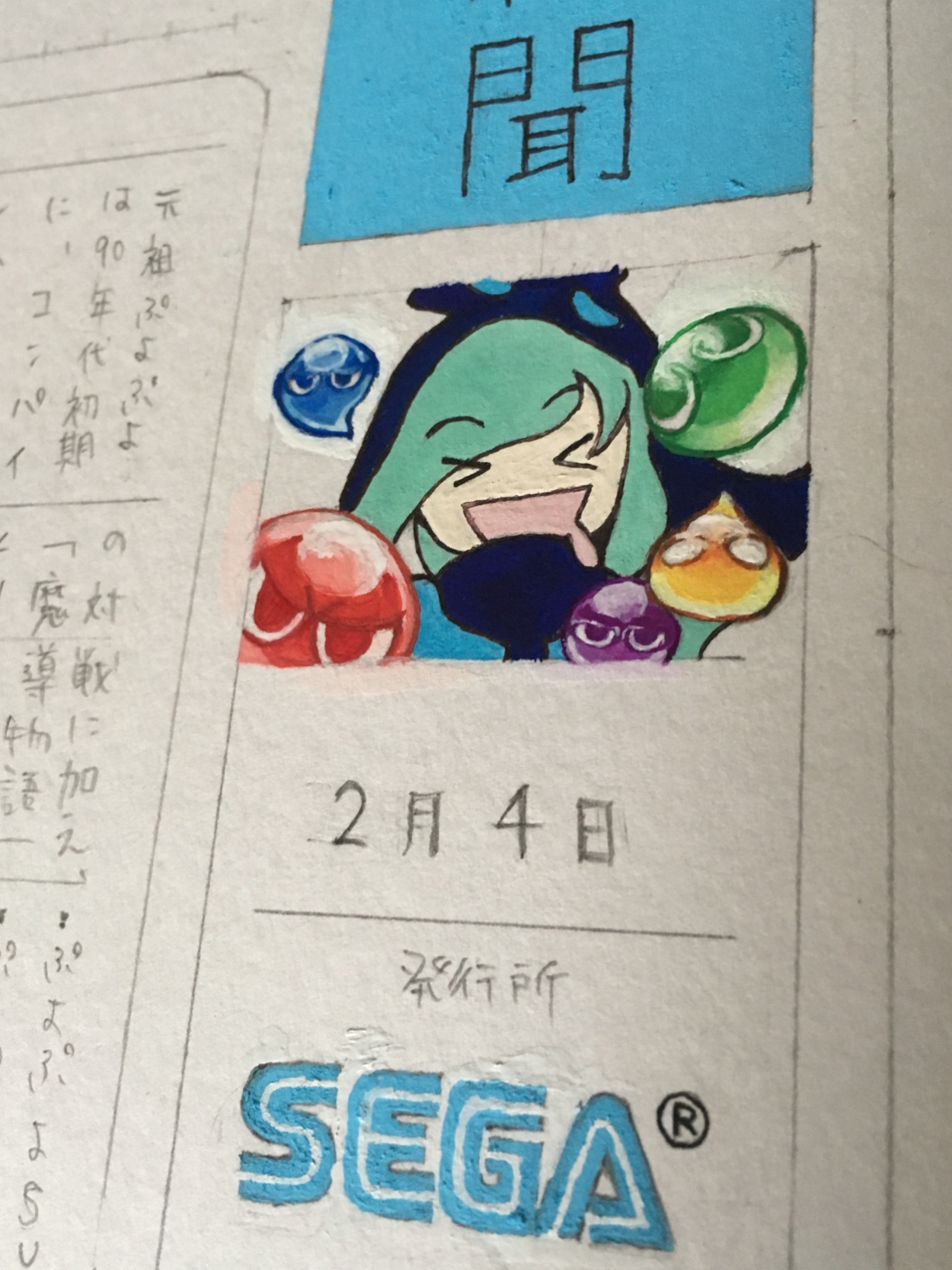 この課題では模写に力を入れました。ぷよぷよのぷよっとしたクリア感、細部まで描きこんだ広告部分は、じっくり見てもらえると嬉しいです。