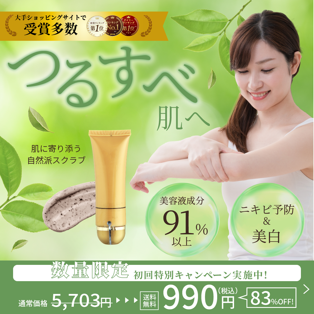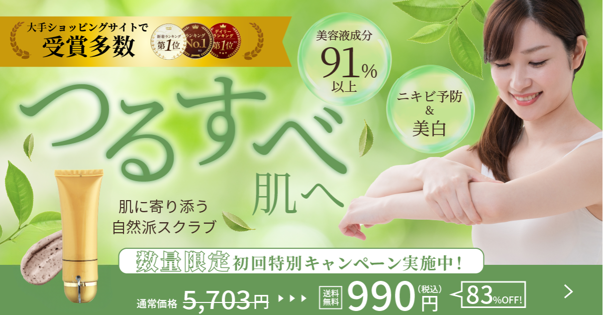 (参考サイトより自然派スクラブであることと、お肌に優しく、雑誌で取り上げられ口コミも多数あることから、コンセプトの意図を組みました。)
