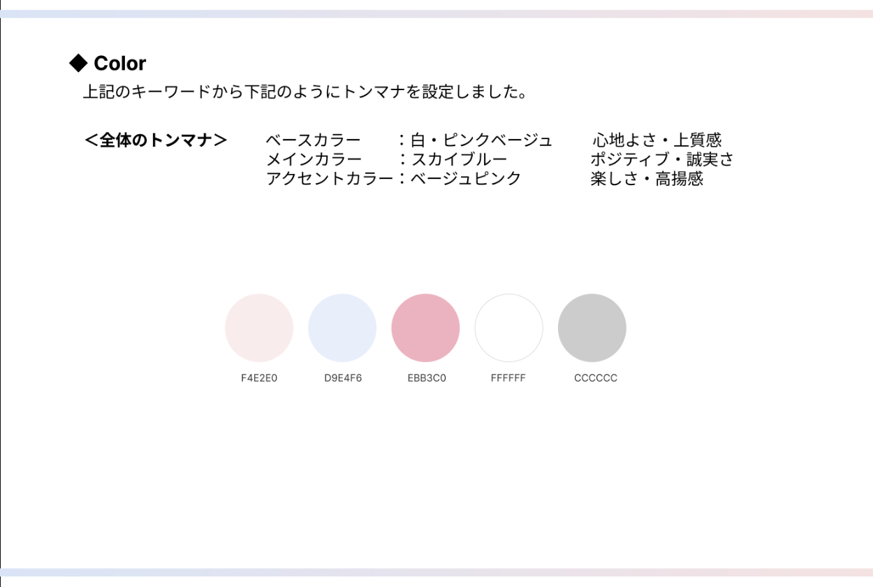 SHElikes PRO DESIGNER COURSの4つ目の課題です。 架空クライアントの要望に基づき、ムードボード・PC版デザインカンプ・SP版ワイヤーフレームを制作しました。目的を遂行するために、ムードボードからデザインまでの一貫した情報設計をし、ビジュアルで体現しました