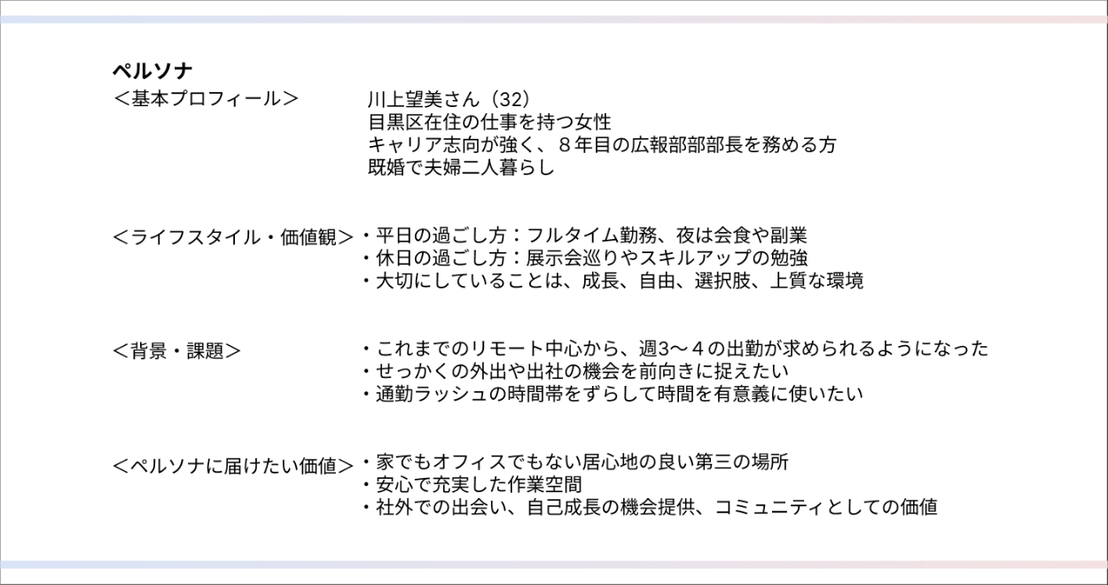 メインのターゲットは都内に住むキャリア志向の強いビジネスパーソン。