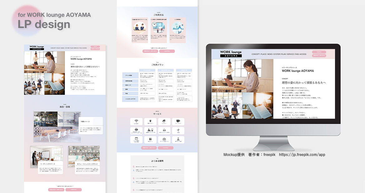【架空】WORK lounge AOYAMA様の LP制作(PCデザイン・SPワイヤーフレーム)
