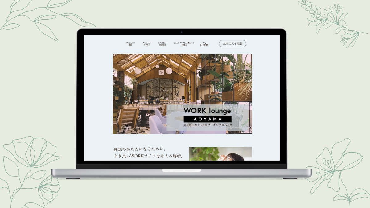 背景として、テレワークが加速し、会員制のカフェ&コワーキングスペースはかなり急増しています。その中でも、「WORK rounge Aoyama」はどこが特異なのか(③工夫したことにて記載した対ユーザーへの訴求メッセージ(差別化ポイント))を意識してデザインに落とし込みました。