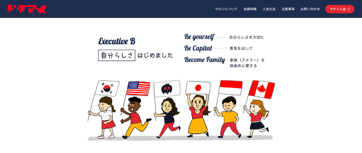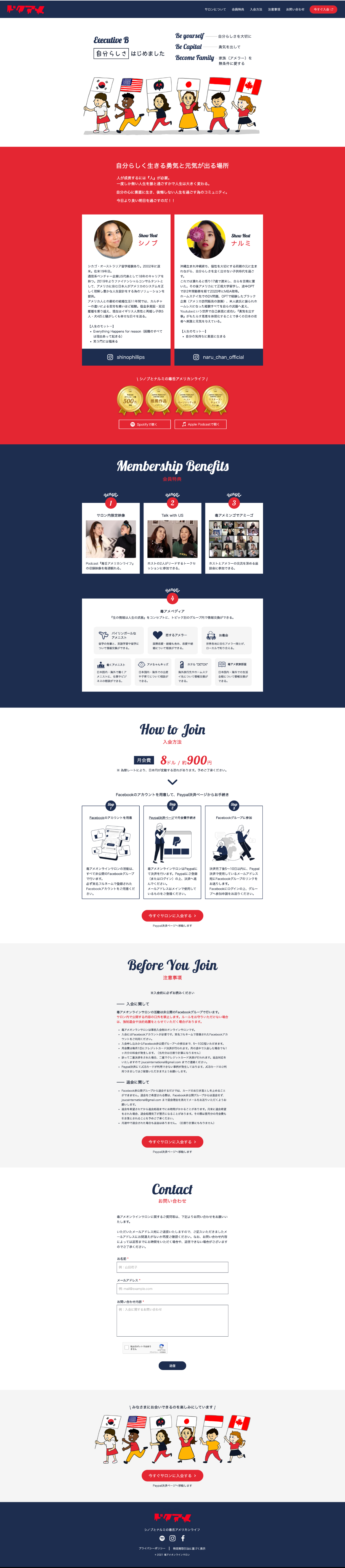 Podcast「シノブとナルミの毒舌アメリカンライフ」にて、アメリカ生活に関する発信をしているおふたりが運営するオンラインサロン「毒アメオンラインサロン」のLPを制作しました。
