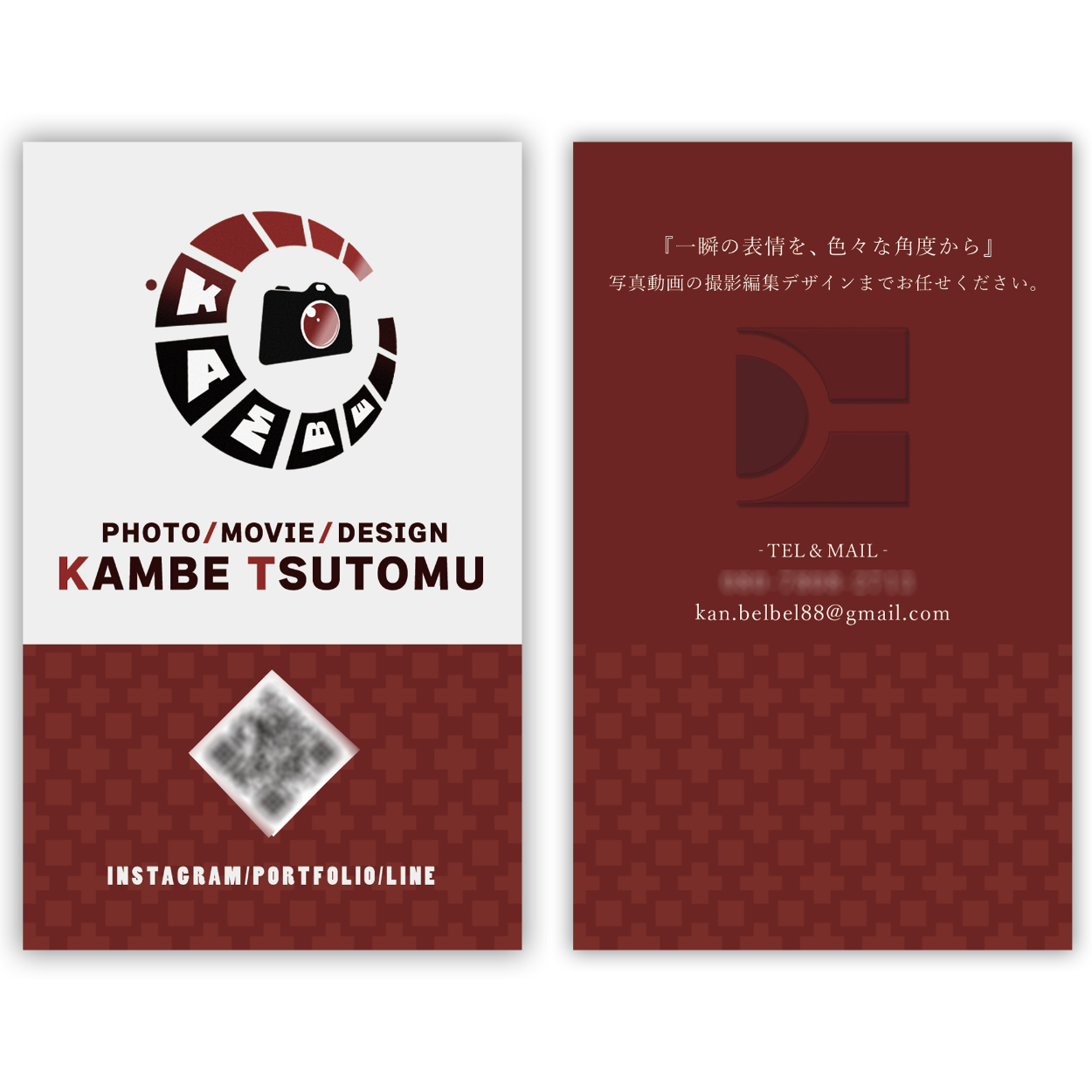 名刺デザイン Tsutomu Kambe カメラマン兼グラフィックデザイナー OVERVIEW シンプルデザインからこだわりのものまで作成 ファッションクリエイター様からのご依頼で作成新聞社社員様からのご依頼で作成神戸自身名刺2024