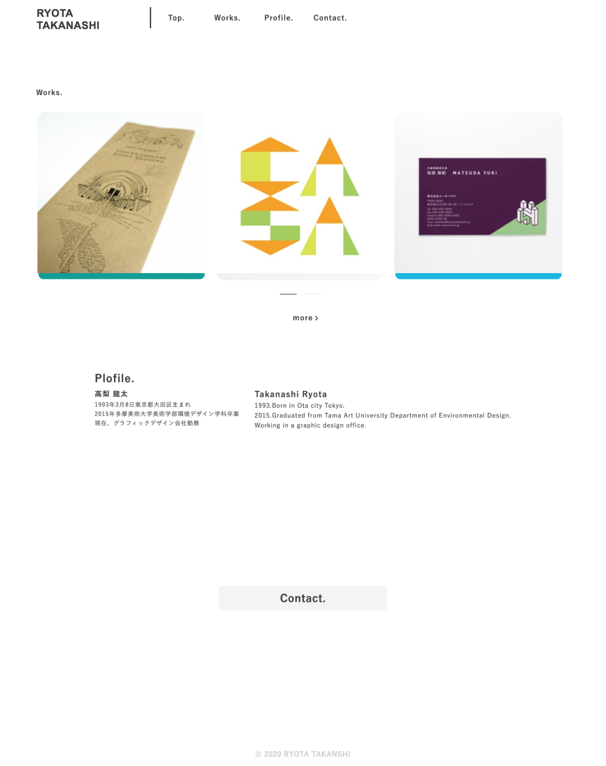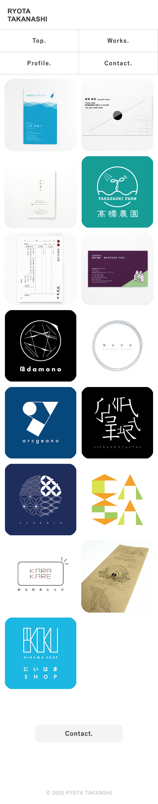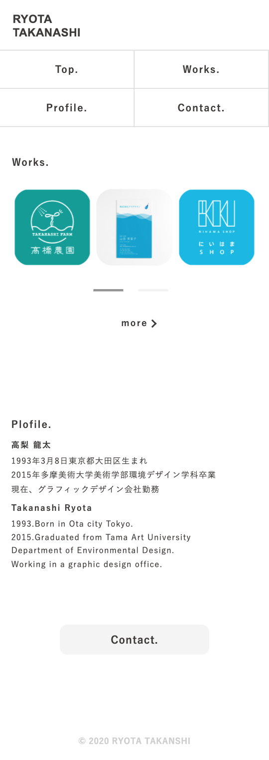 今回主に名刺やロゴや紙のデザインをしている知り合いのデザイナーさんに自分のポートフォリオを作りたいと頼まれ制作したWebサイト。