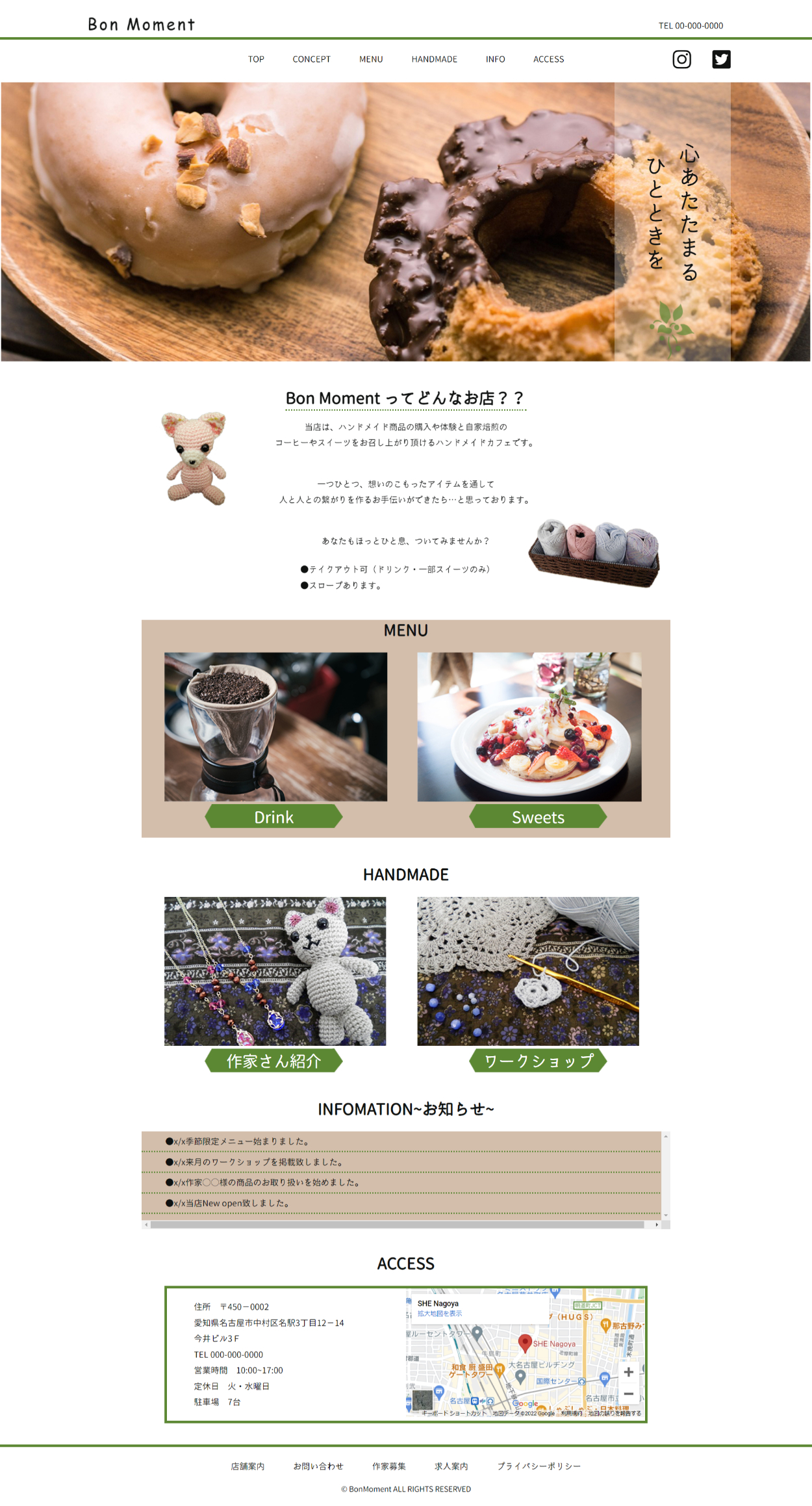 <自主制作>ハンドメイドカフェのサイト(架空)