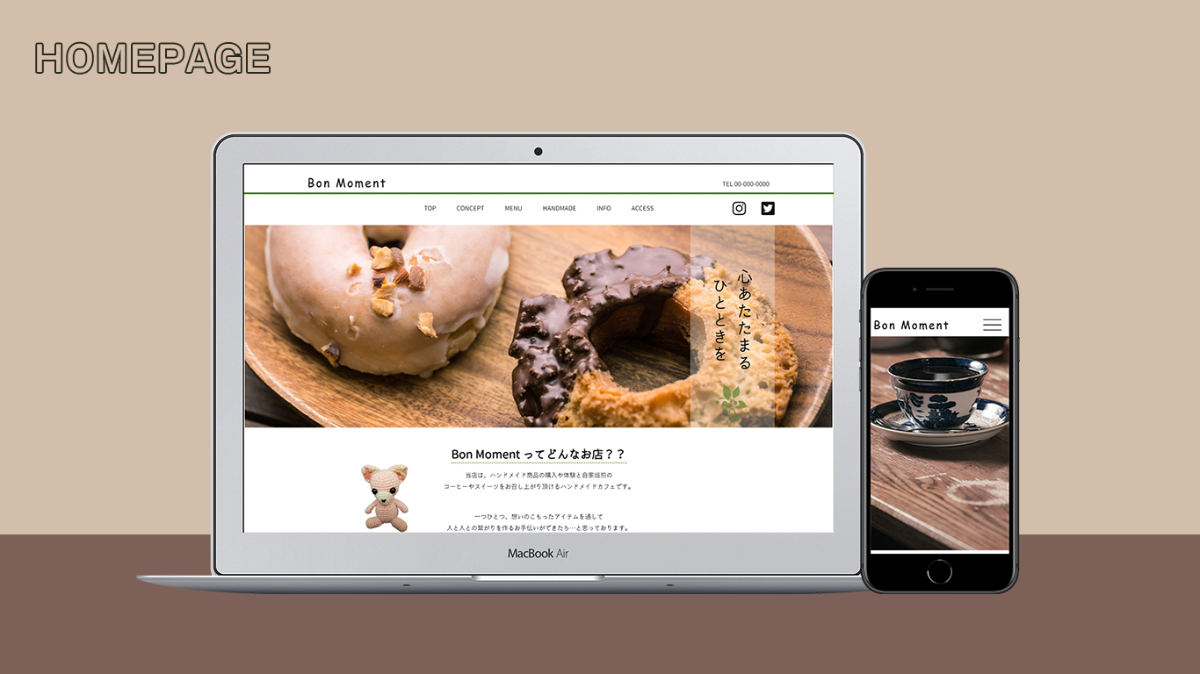 自主制作として、ハンドメイド商品の購入、体験とカフェを楽しむことができるハンドメイドカフェのサイトを作成しました。 *X(旧Twitter)の固定ツイートにこのサイトの動画ございます。(サーバーには上げておりません) ぜひご覧いただけますと幸いです。