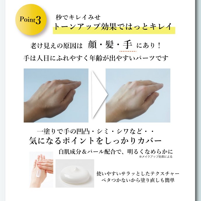ボディケアアイテム④ kt デザイナー OVERVIEW 商品画像やサムネイル、容器デザイン YEAR 2021 トーンアップUVハンドクリームキャッチコピー:光老化を防ぐ 脱老け見えハンド価格帯700〜900円