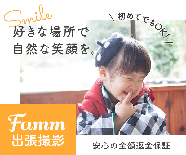 出張撮影は好きな場所が選べるので子どもの負担が少ないです。なので、どんなに人見知りや不安感が強い子どもでも「笑顔が引き出せる可能性が高い」ということがメリットだと言えます。そういった心理的な「安心感」に訴えるよう意識して作成しました。