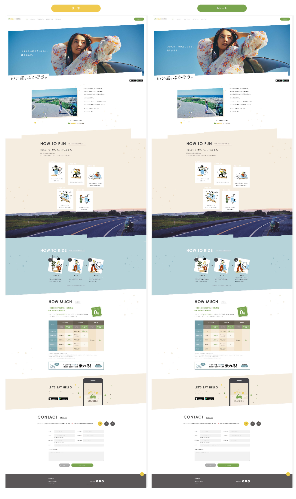 OpenStreet 株式会社様の「HELLO SCOOTER」 というサービス提供サイトをトレースさせていただきました。