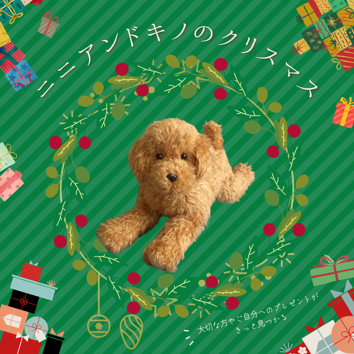 クリスマスをイメージしやすくする為、たくさんのプレゼントで囲み
