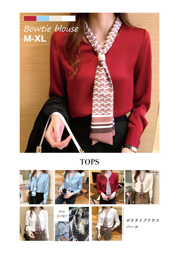 ■「スカーフ柄」のアクセス需要に対応すべく出品したボウタイブラウス。