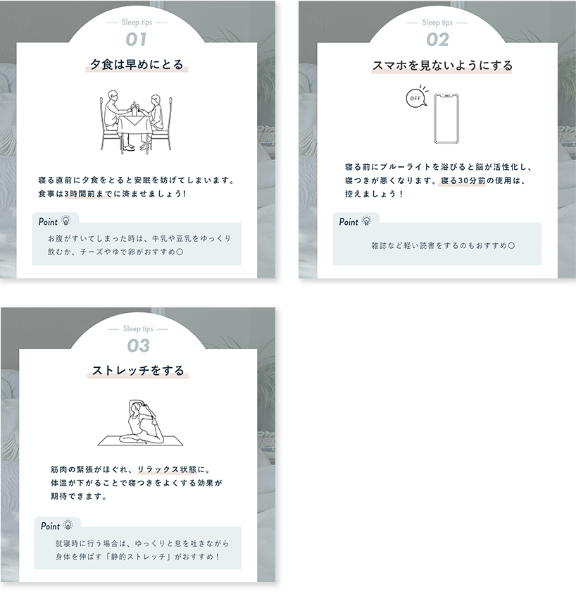 表紙とテイストを変えないよう、背景に画像と透過色を敷くことで抜け感を出しました。