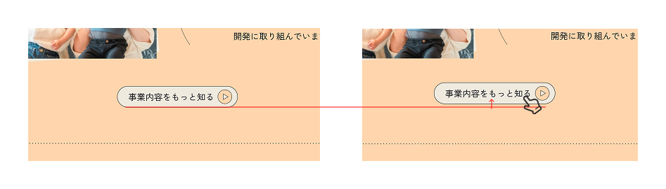 同様に、各セクションの一番下にある詳細ページに遷移させるボタンでは、カーソルを合わせるとボタンが上に動くようなモーションをつけました。