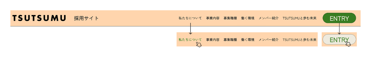 ヘッダー上のナビゲーションメニューでは、選択すると色を変化させ、どこを選択しているかをわかりやすいように設計しました。