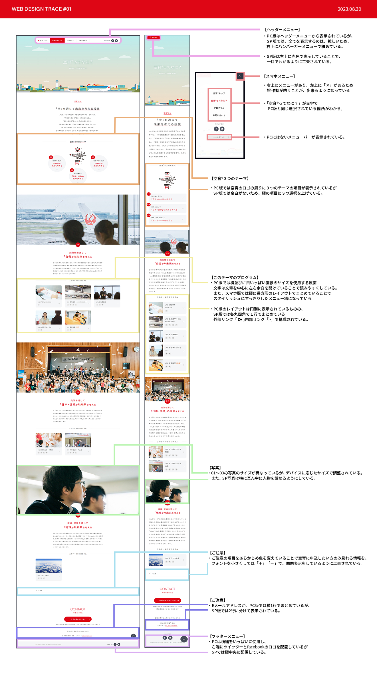 JAL株式会社が提供する「空育」のLPをトレースしました。