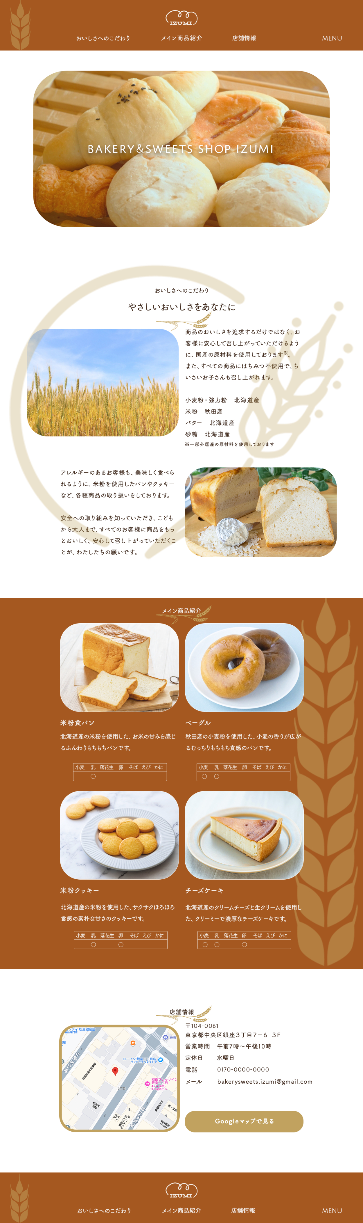 - 原材料(主に粉)にこだわっているので、小麦・米の稲穂をイメージしたアクセントカラー