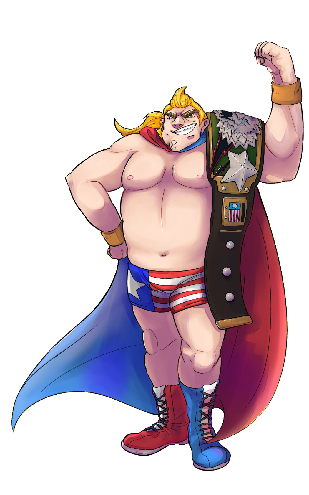 プロレスラー ZOーWA イラストレーター OVERVIEW 2019年 ツール:クリップスタジオペイント 作成時間:12時間 格闘ゲームのキャラクターを想定して作成。強さが正義と信じて疑わないプロレスラー 。ヒーローに憧れており、真っ直ぐに信念を貫くことを心情にしている。そのため異なる意見があると敵とみなすところがある。