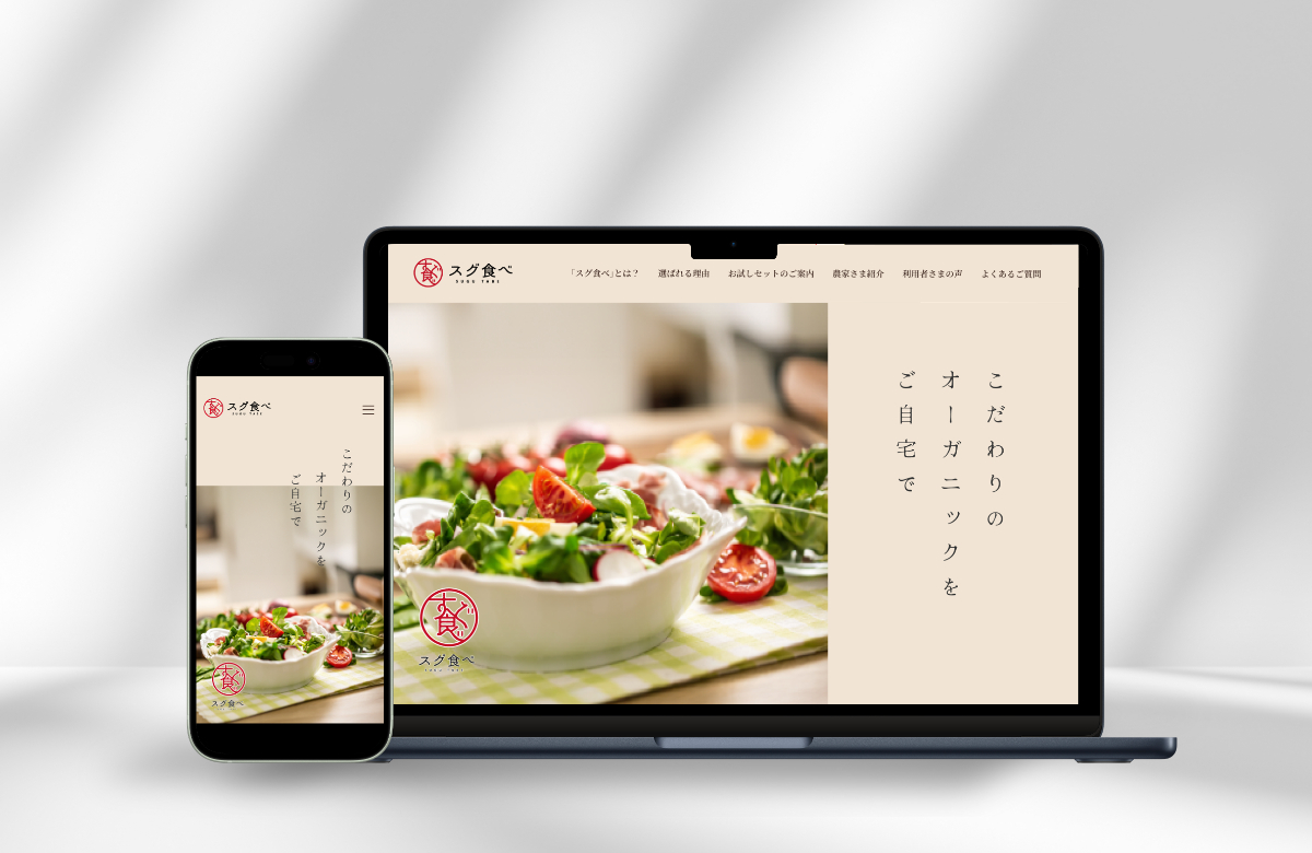 オーガニック野菜のイメージに合わせ、やさしく安心感のある配色と余白設計を意識しました。CTAボタンの配置設計