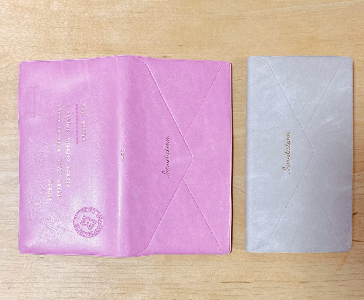 当時新作の生地で、カラーリングが今までになく可愛くて(手帳業界で高級感のある生地は渋めの色ばかりだったので)ぜひ使いたい!とワクワクしたのを覚えています。