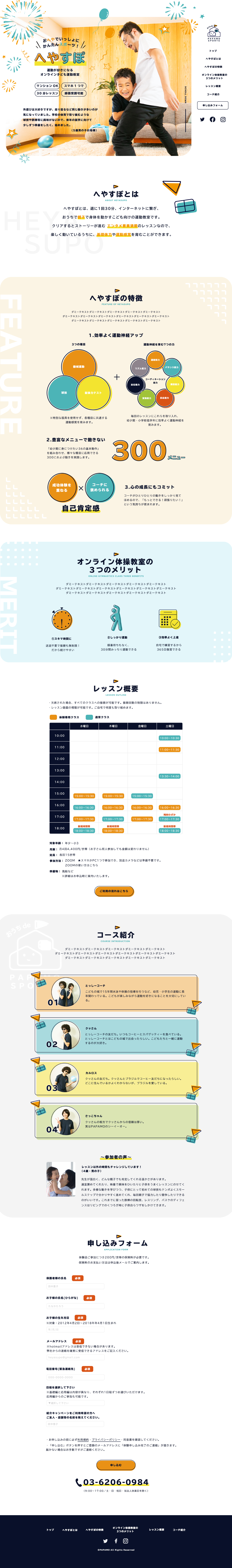 メインビジュアルは賑やかな雰囲気に仕上げ、お子さんの顔が目立つような写真を選定しました。