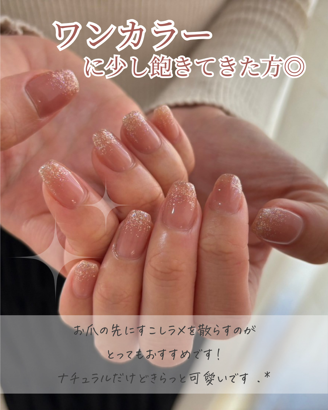 - タイトルの色とネイルの色を合わせることで、統一感を持たせるよう意識しました。