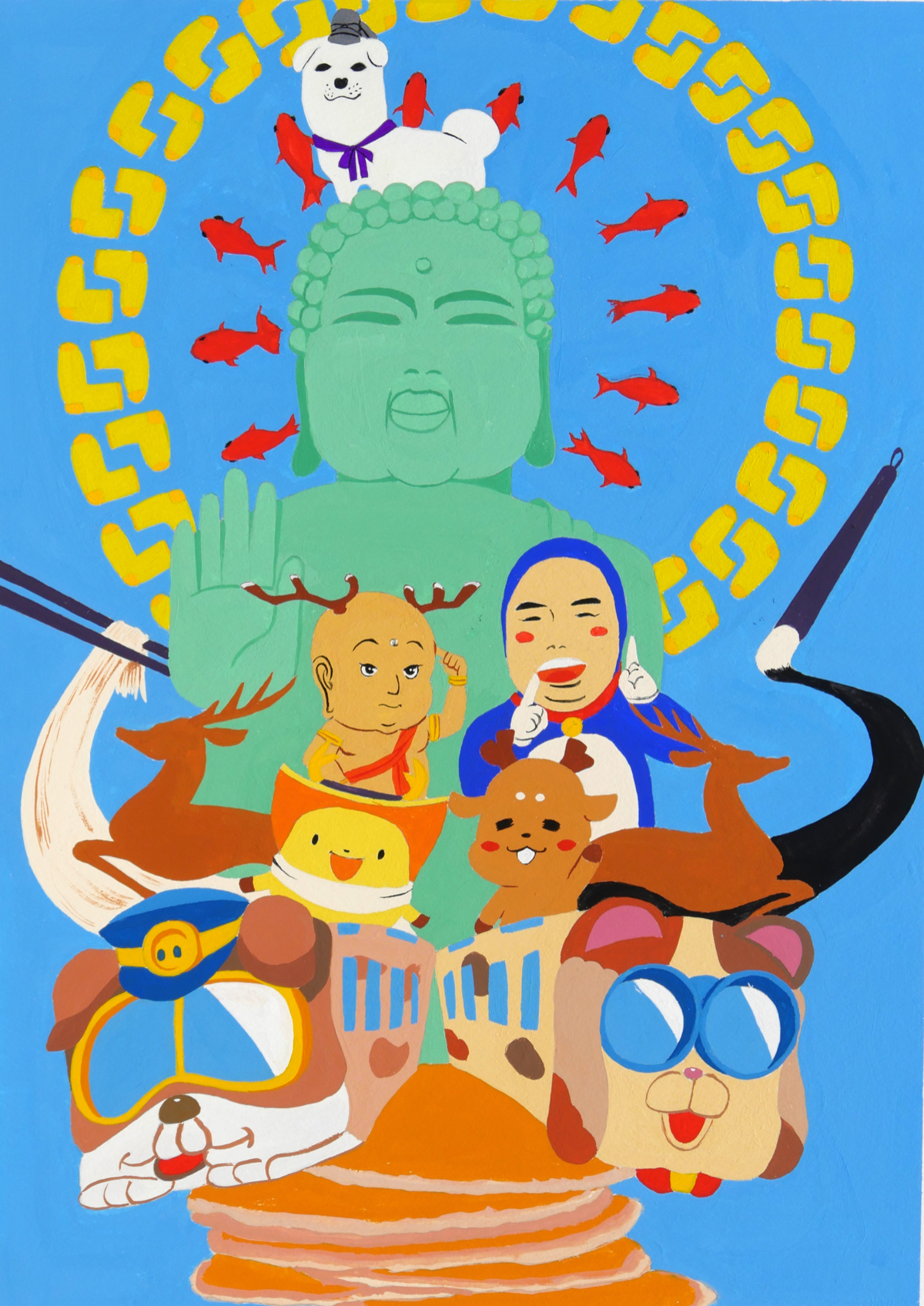 奈良県盛り合わせ 2018年7月 画材:B3ワトソン紙、アクリルガッシュ