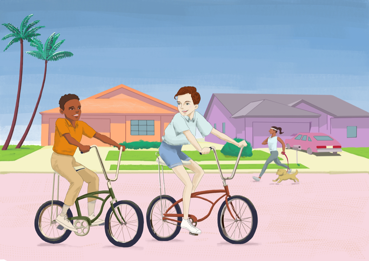 人物と風景を細部まで描き、絵だけで情報を伝えるという課題で、アメリカ西海岸の少年を描きました。