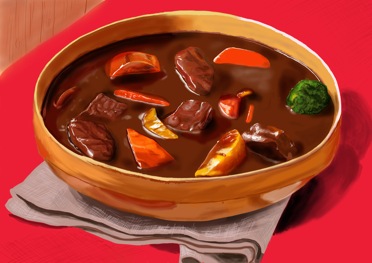 料理の画像を参考に、それの模写をする課題で、ビーフシチューを描きました。