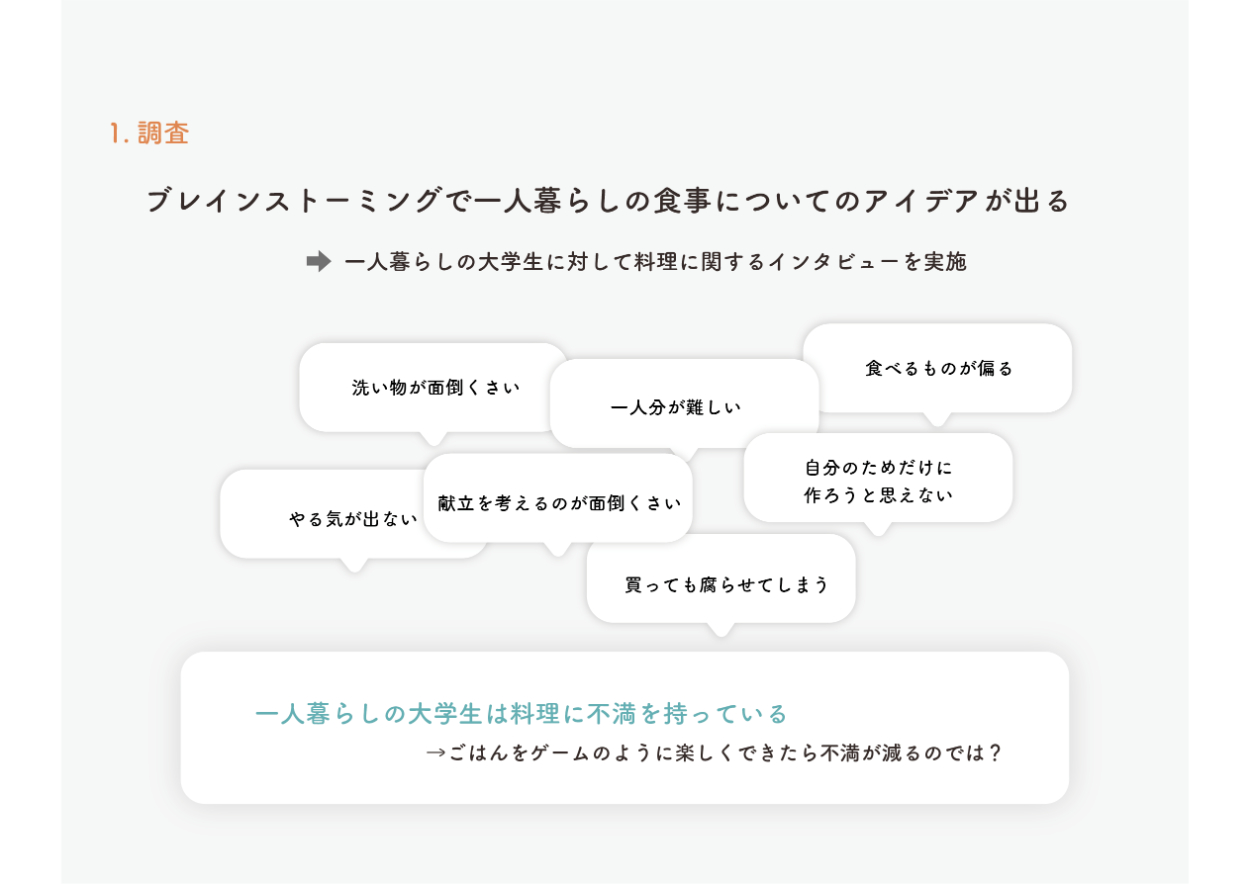 実際に一人暮らしをしている大学生にインタビューをすることで課題が明確になった。