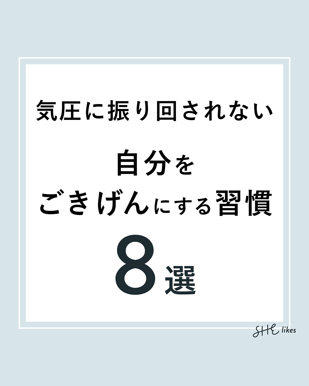 「気圧に振り回されない 自分をご機嫌にする習慣8選」をテーマにしたSNSバナーコンペに応募しました。コンテンツの内容、構成、デザイン等自分で考え制作致しました。 【使用ツール:Photoshop】