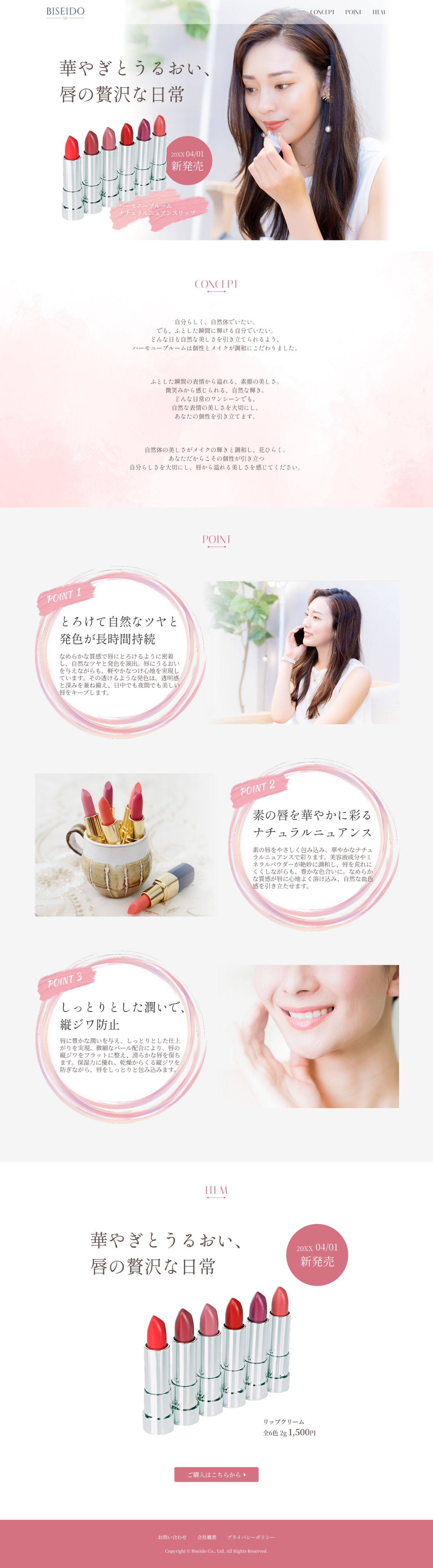 【HerTech】リップ販促 LPデザイン uz Creator / Designer / Director OVERVIEW WebデザインスクールHerTechの課題 YEAR 2025 ■期間 2025年5月■形式 HerTech課題■制作ツール Figma