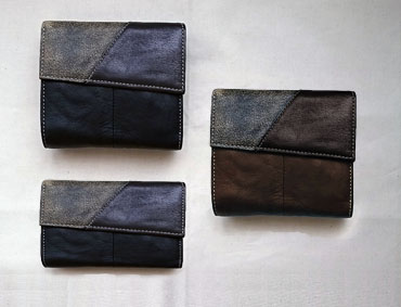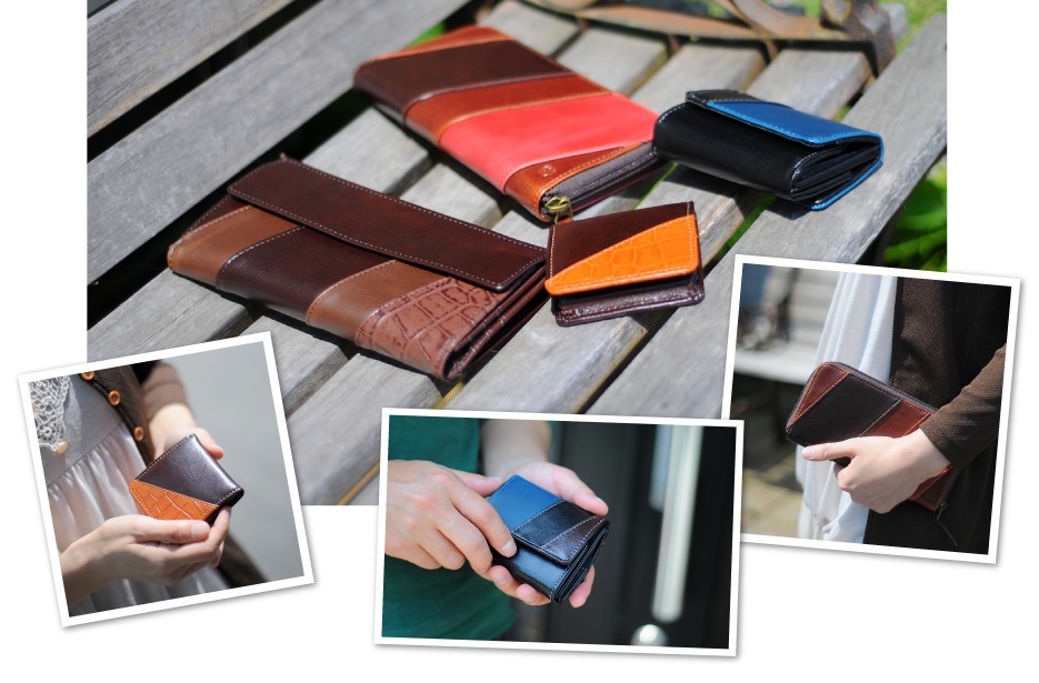 素材感が全て異なる革 3種類の革をミックスしたデザイン性のある仕上がり。リーズナブルなのに高見えするコストパフォーマンスが高いライン。
