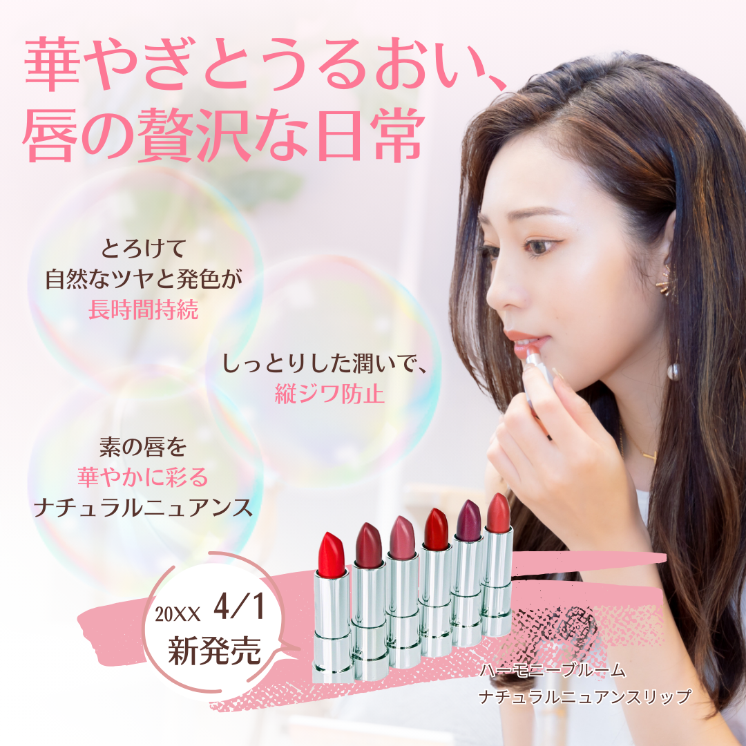 HerTechの課題で製作しました。 Canvaを用いて、架空の女性向け商品をイメージしてバナーを作りました。 気を付けたこととして、 ・女性に響きそうな色合い ・見やすい文字の配置 ・商品がいかに魅力的に見えるかのレイアウトを考慮して完成させています。