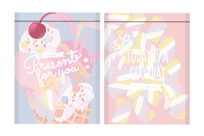 【自主制作】イラスト リナ デザイナー イラストレーター OVERVIEW 商品化していない個人のイラストやテキスタイル ▼年賀状イラスト子年にちなんだ年賀状イラスト▼猫イラスト▼ジップバックアイスとマシュマロのイラストとロゴ▼他制作テキスタイル