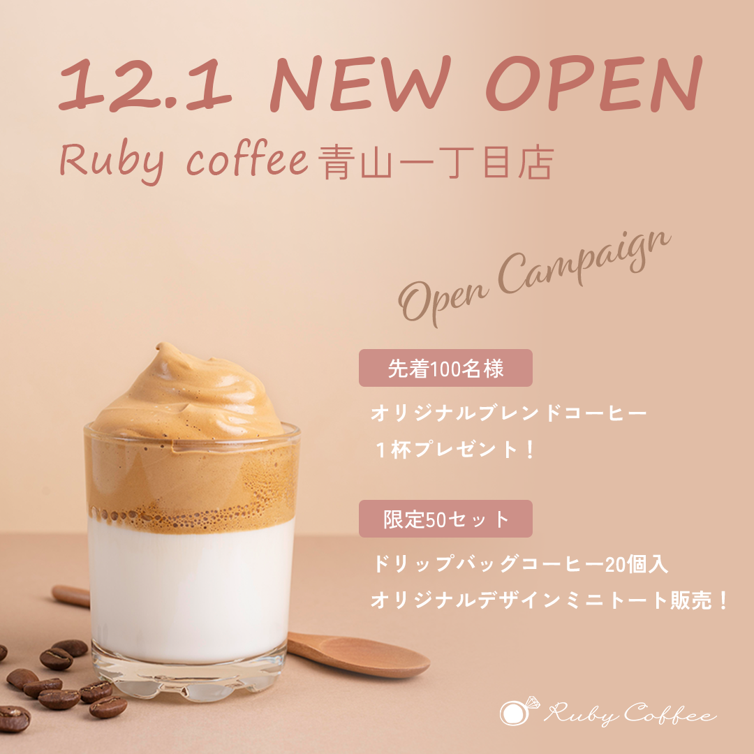 【架空案件】Ruby Coffee NEW OPEN 修/osamu Webデザイナー OVERVIEW 架空のカフェのオープニングキャンペーンバナーです。 YEAR 2025 オンライン講習の課題の過程で作成しました。サイズ:1080×1080px使用ソフト:Photoshop