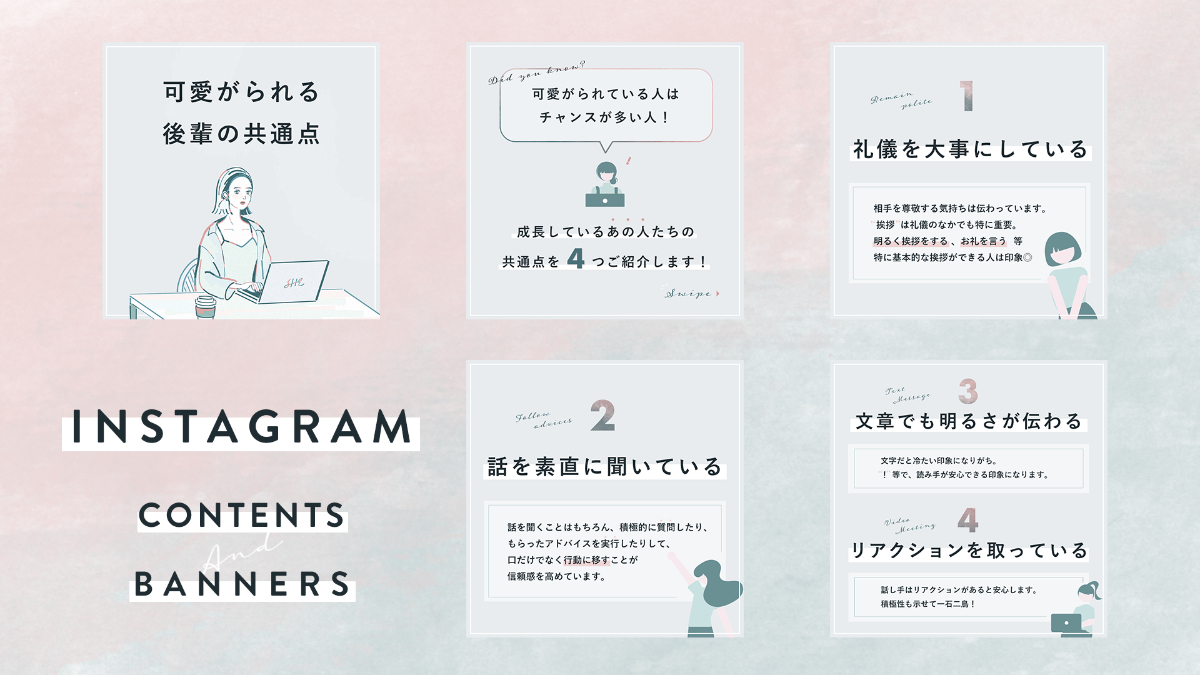 受講しているキャリアスクール"SHElikes"のInstagramアカウントで配信するコンテンツバナーの制作。