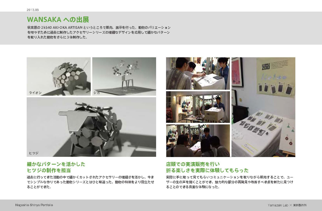 大田区の中小企業と「これからのものづくり」の研究と探索を行なっていました。 板金加工技術を活かした製品を制作、(過去の先輩方が展示、WSなどを実験的に行い)、その成果として独自ブランド「STAINLE ZOO」を立ち上げに貢献した。
