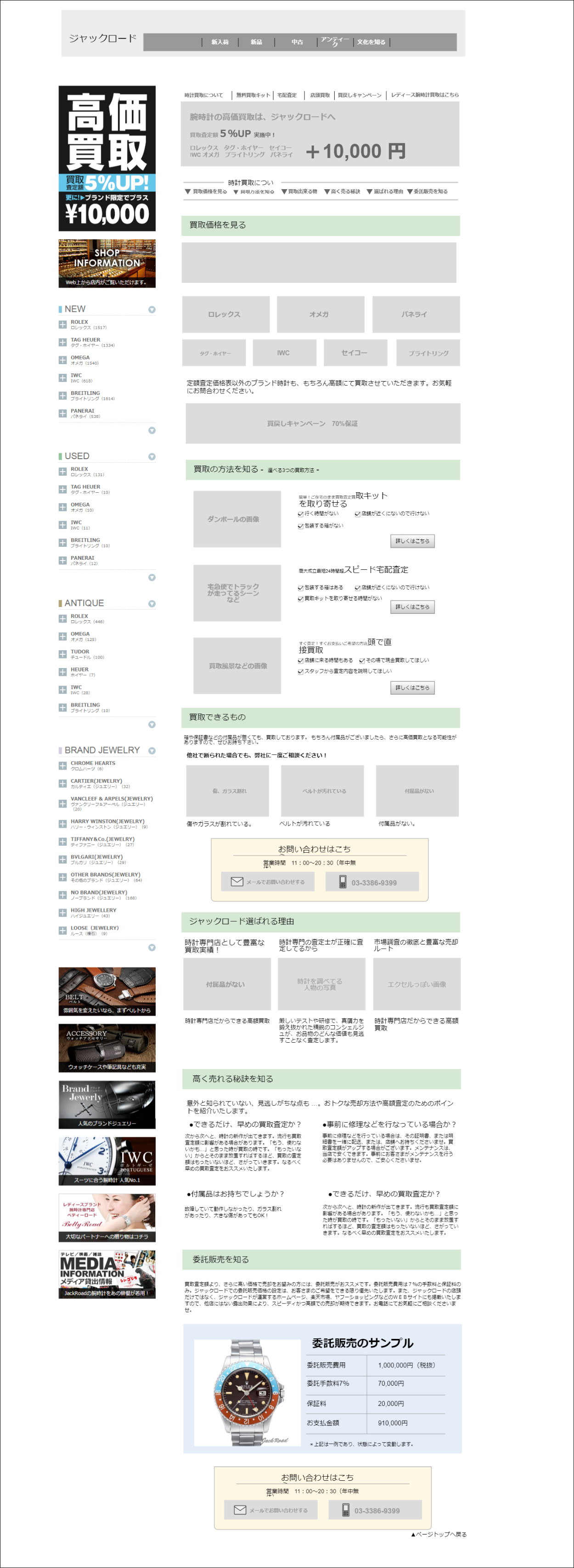 高級腕時計は新品が出回ることは数が圧倒的に少ない為、中古を買い取って販売していくことが売り上げに繋がるので、買取は重要となってくる。そのため開設当時からそのままになっていたページをリニューアルして分かりやすくし検索順位を上げ買取件数を上げることが目的。
