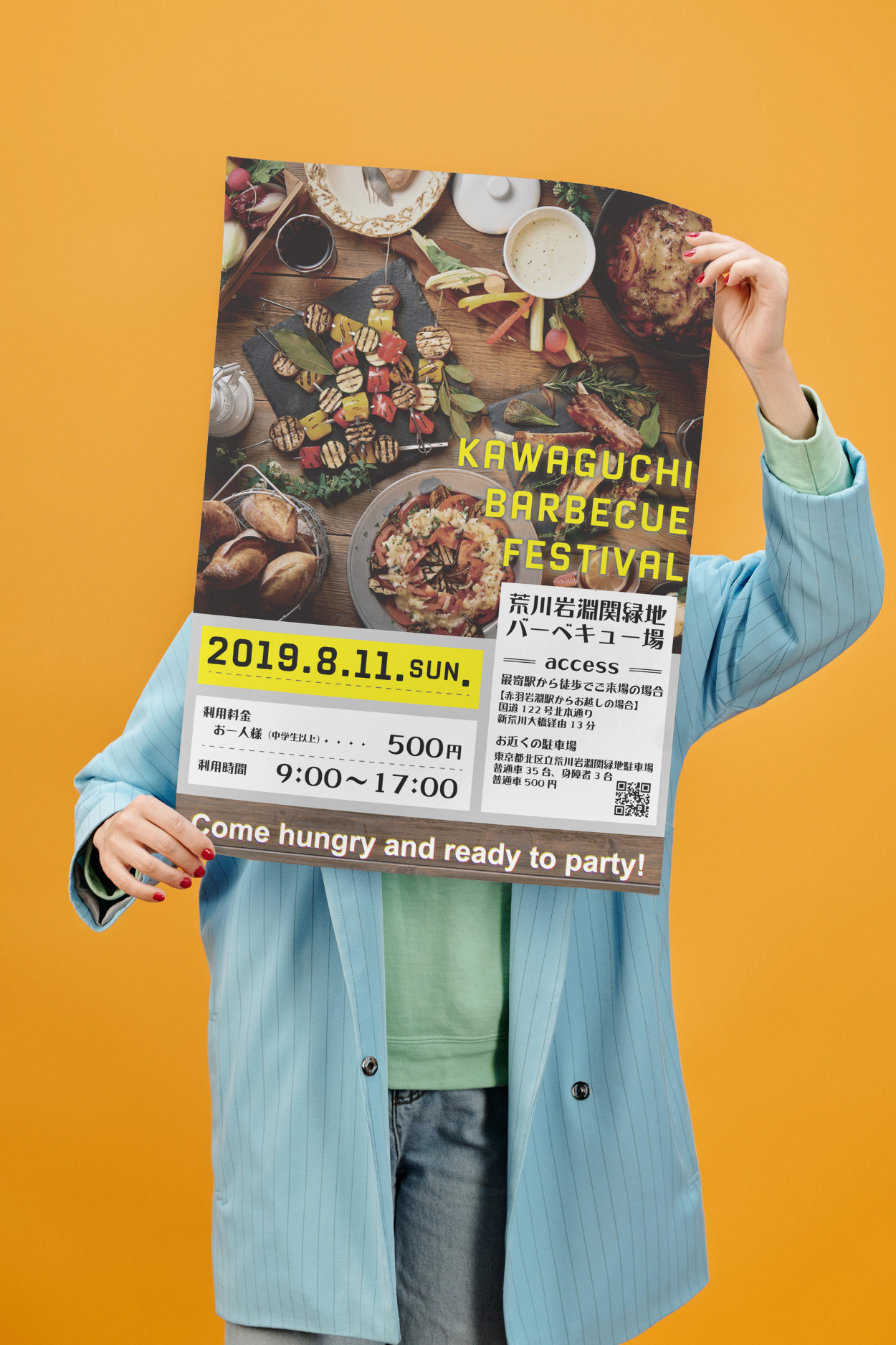 豪快なバーベキューをしようとなったので、豪快なバーベキューのイメージがアメリカだったのでレトロなアメリカをイメージしたポスターを制作しました。